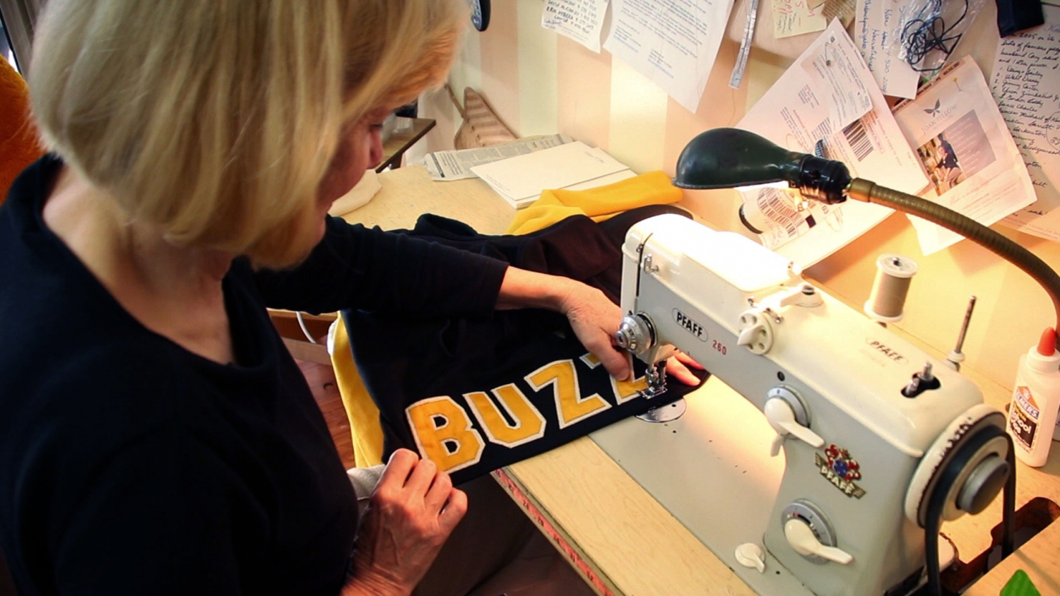 Not long after Kathy Spetz graduated from Florida State University in 1971 with a degree in fashion design, she was flown up to Atlanta to interview for a stewardess job with Delta Air Lines. She never did get those wings, but she eventually wound up making some – for Georgia Tech’s beloved mascot, Buzz.