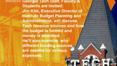 The first in the Inform Georgia Tech Series will focus on budgets and financing with guest Jim Kirk, executive director of Institute Budget and Planning Administration.