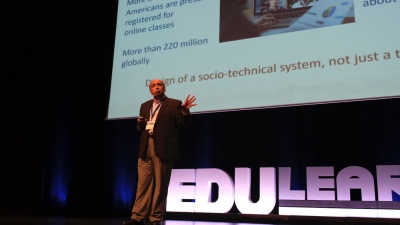 Ashok Goel shares the transformative advancements of the NSF AI-ALOE Institute at the EDULEARN23, highlighting the role of personalized AI cognitive assistants and data analysis in revolutionizing adult online learning.