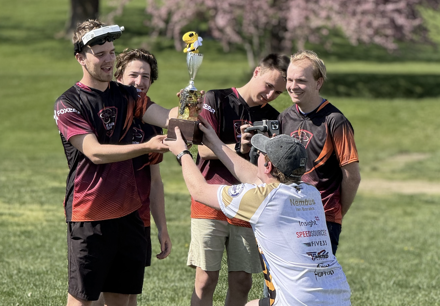 The RotorJackets pose in front of their drones at the Collegiate Drone Racing Championship.