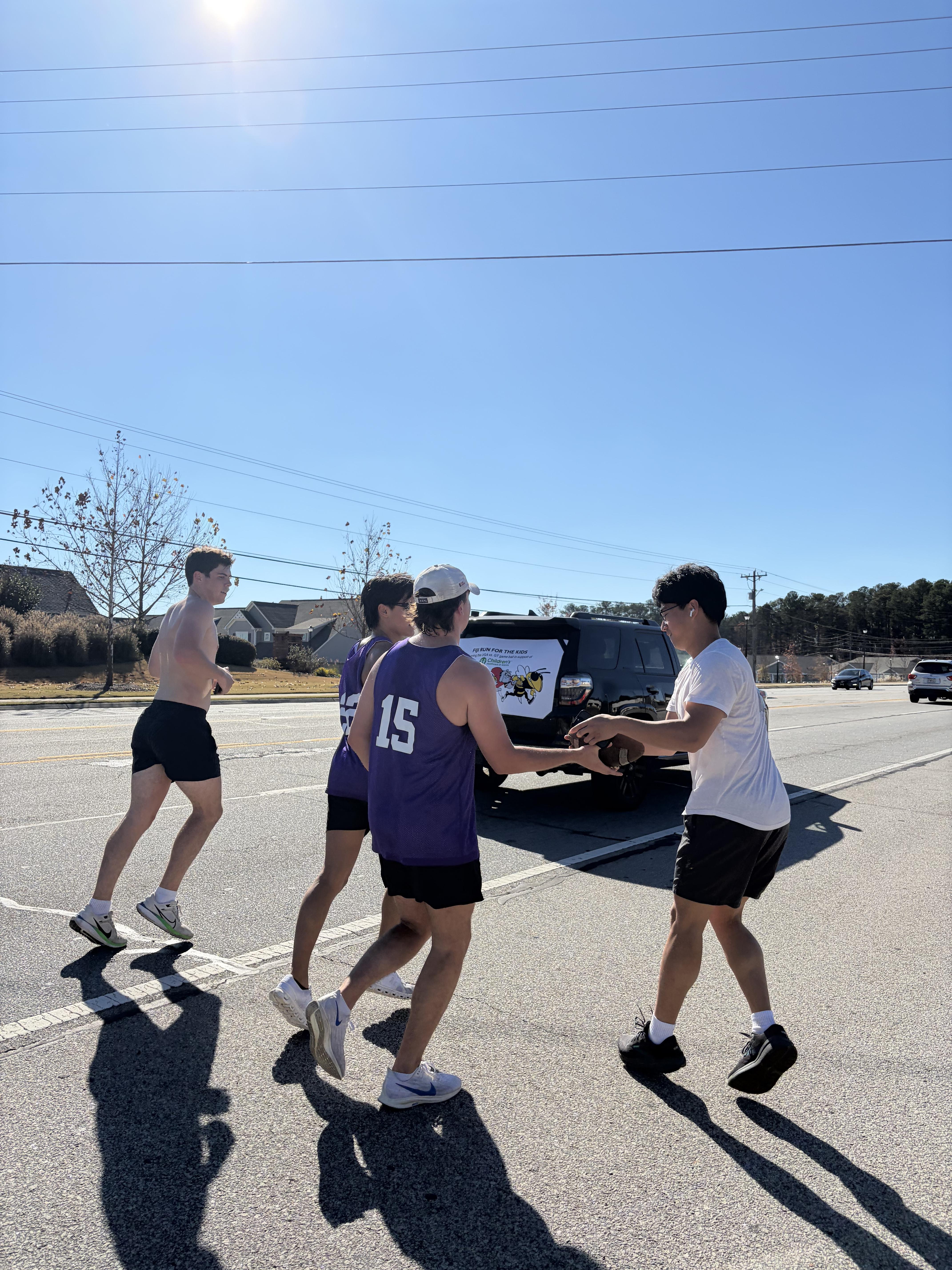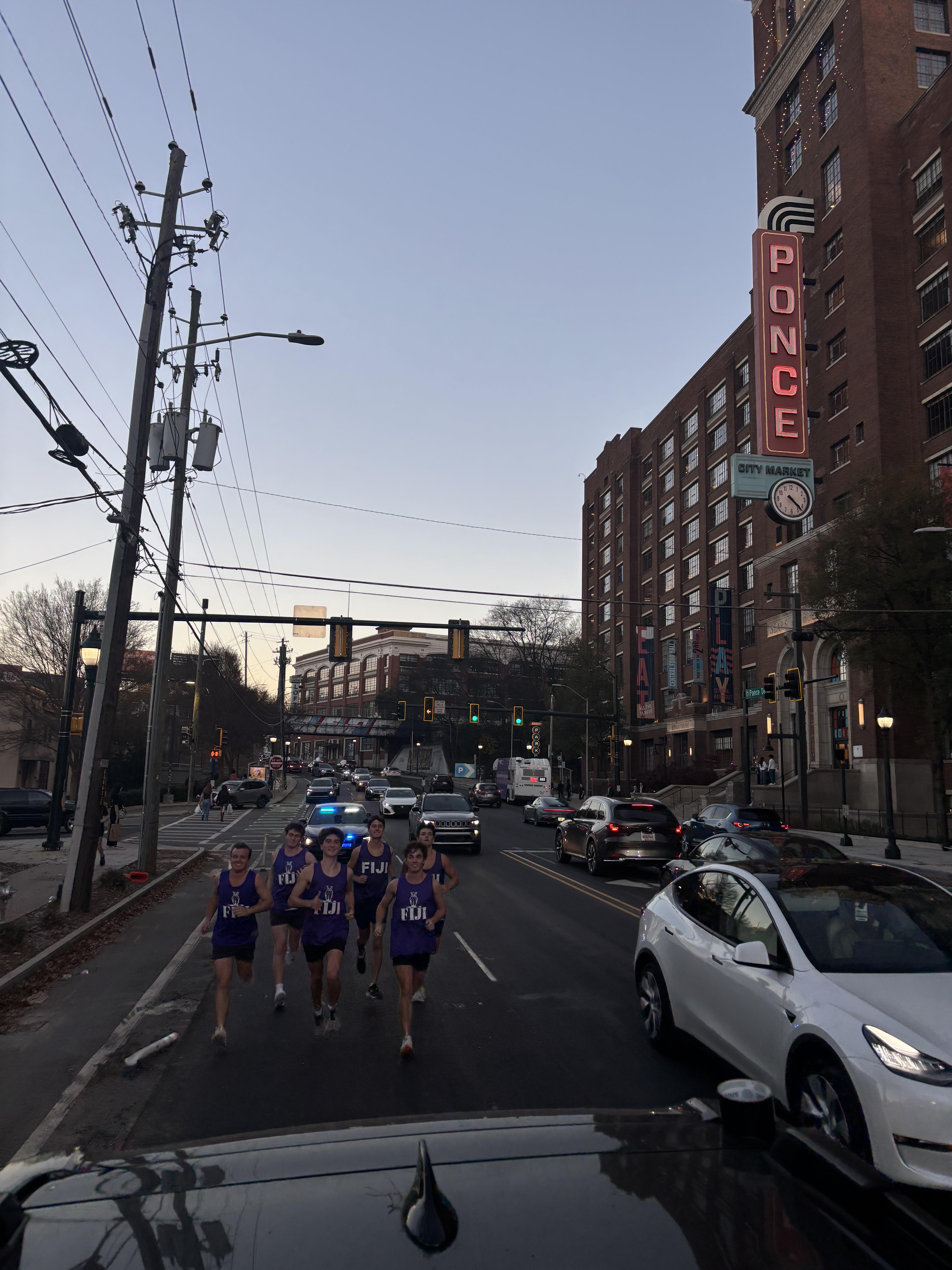 The Georgia Tech FIJI chapter took over the relay at the halfway point in Loganville, Georgia, carrying the ball the final 33 miles back to Tech. With a Georgia State Patrol escort and lead car providing snacks and music, 20 members carried the ball along the way. First-year students Kyle Wright and Joey Bishop ran half marathons.