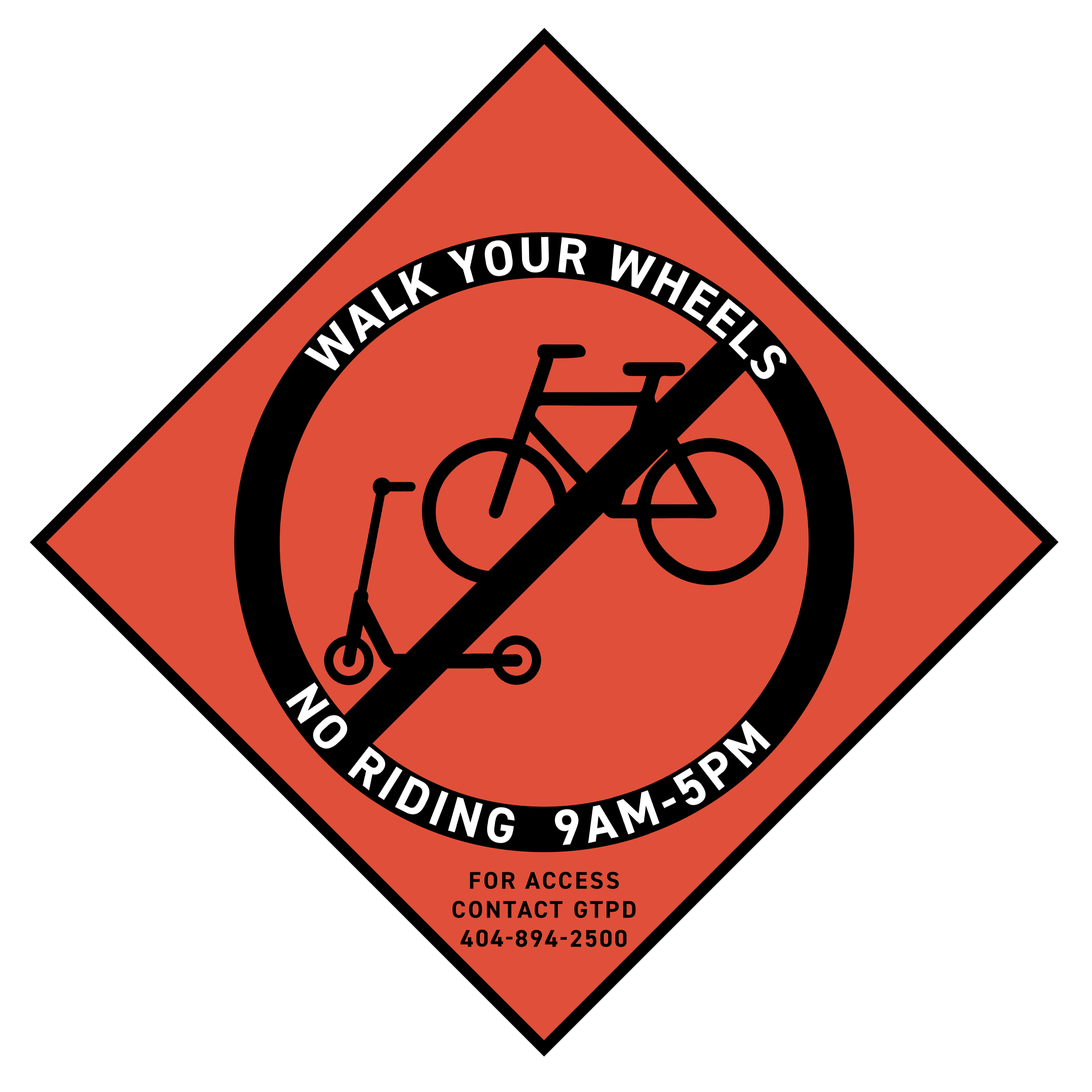 As campus activity and foot traffic in the area continues to increase, the walkways around Tech Green will be designated for pedestrians and ADA mobility devices. Cyclists, scooters, and other micromobility users will be required to dismount and walk their devices during peak pedestrian traffic, generally 9 a.m. to 5 p.m.; exceptions or extensions may be made at the discretion of GTPD. Additionally, golf cart users will need to use alternate pathways around campus rather than these walkways.