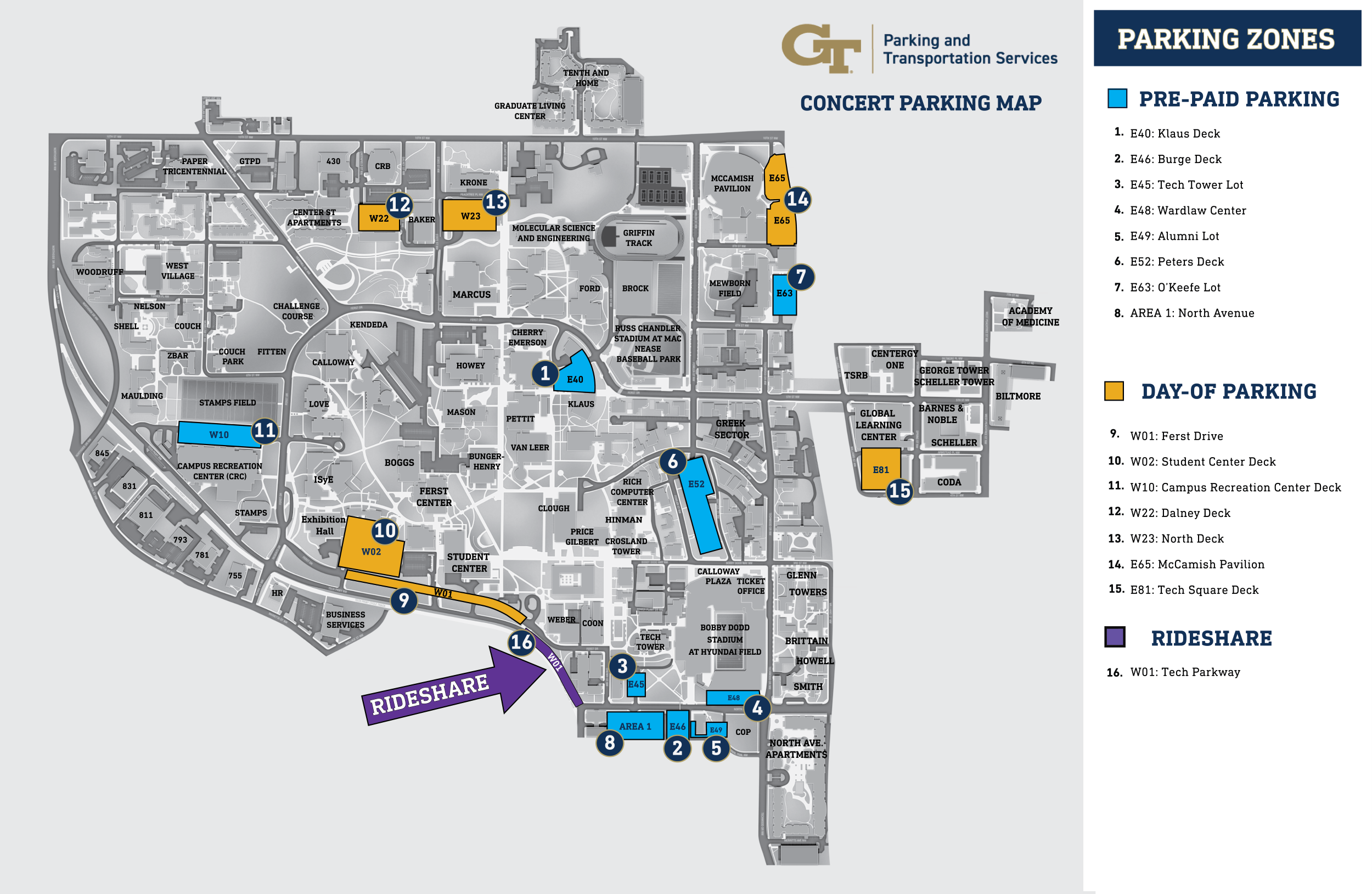 The following parking areas will be closed to permit holders to accommodate concert parking: