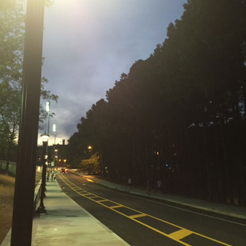 “At night after walking back from dinner, the atmosphere was very peaceful with the street lights, the soft color of dusk, and the mild wind, so the scene really caught my eyes. I also noticed how safe I felt on campus at night,” Kathy says.
