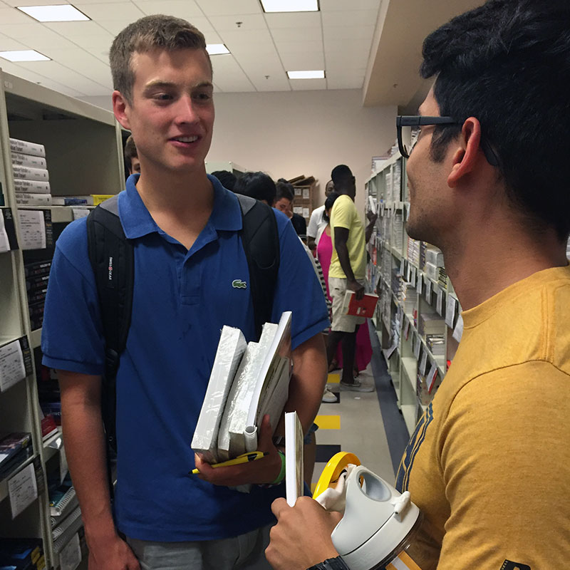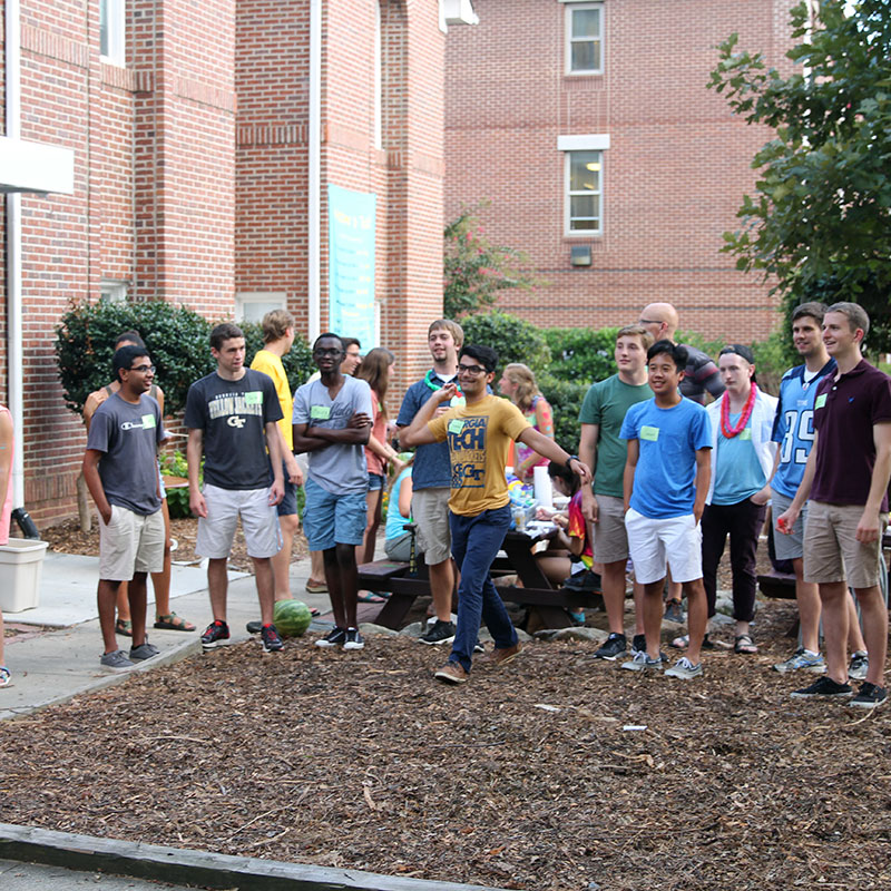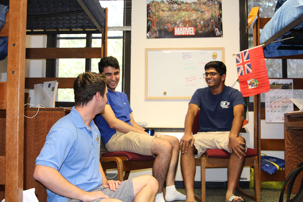 It’s back at Caldwell Hall for a little down time and meeting his peer leaders. “I forgot your names already,” Harshith admits. “It’s ok. First days can be tough,” says Sherwin, his PL.