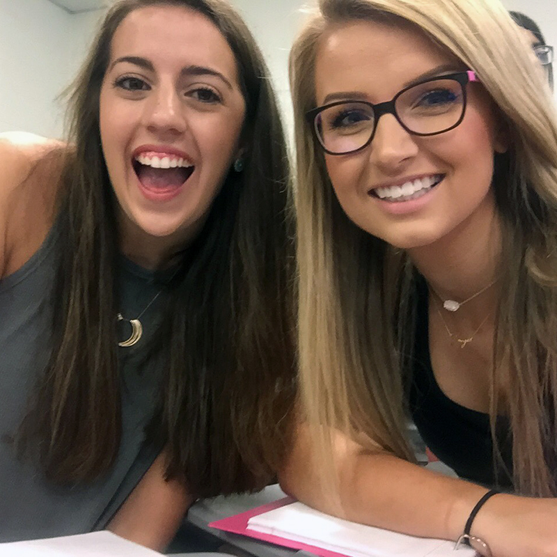 A quick selfie with a friend before the first of three classes of the day. Up first on Lauren’s schedule: chemistry.