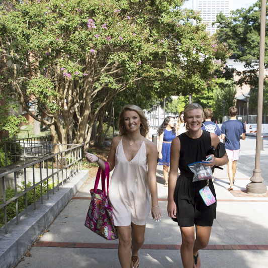 Lauren and her roommate are recharged and ready for recruitment — the process by which prospective sorority rushes learn about all of the sorority options on Georgia Tech’s campus. So it’s back up Freshman Hill again … this time a little more dressed up.