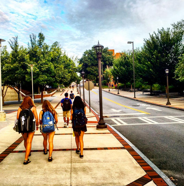 It’s up Freshman Hill for Naz and her friends to get to their 8 a.m. math class. “It was a long walk to the IC but we didn’t want to risk missing a bus or getting to class late on the first day!” she says.