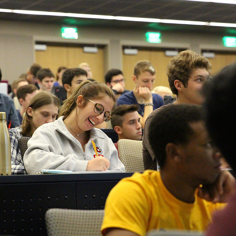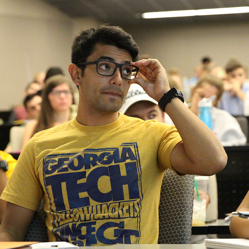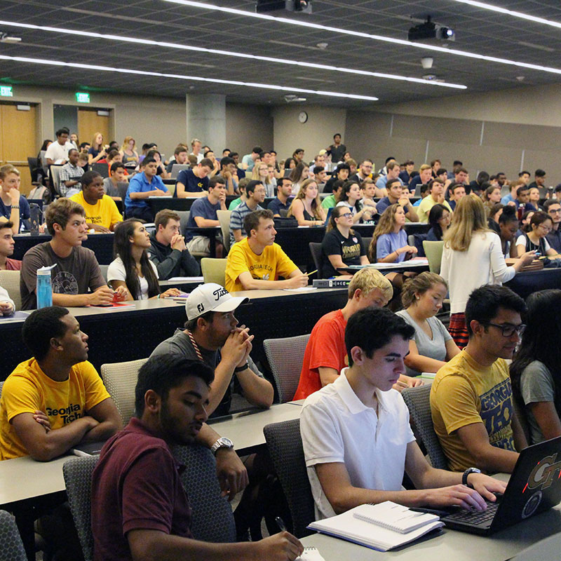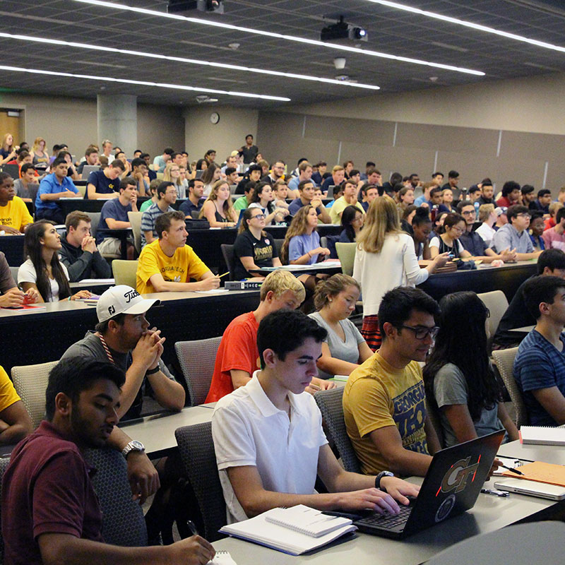 It’s Sebastian’s first class at Georgia Tech and it’s physics — a popular core class.
