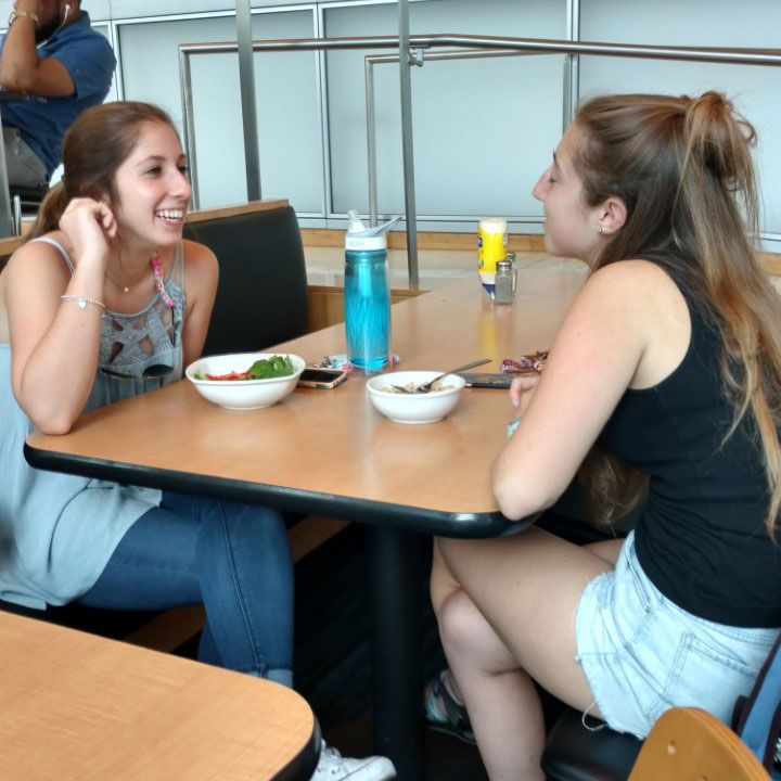 After chemistry, a break for lunch gives Lauren the opportunity to meet up with a few friends.