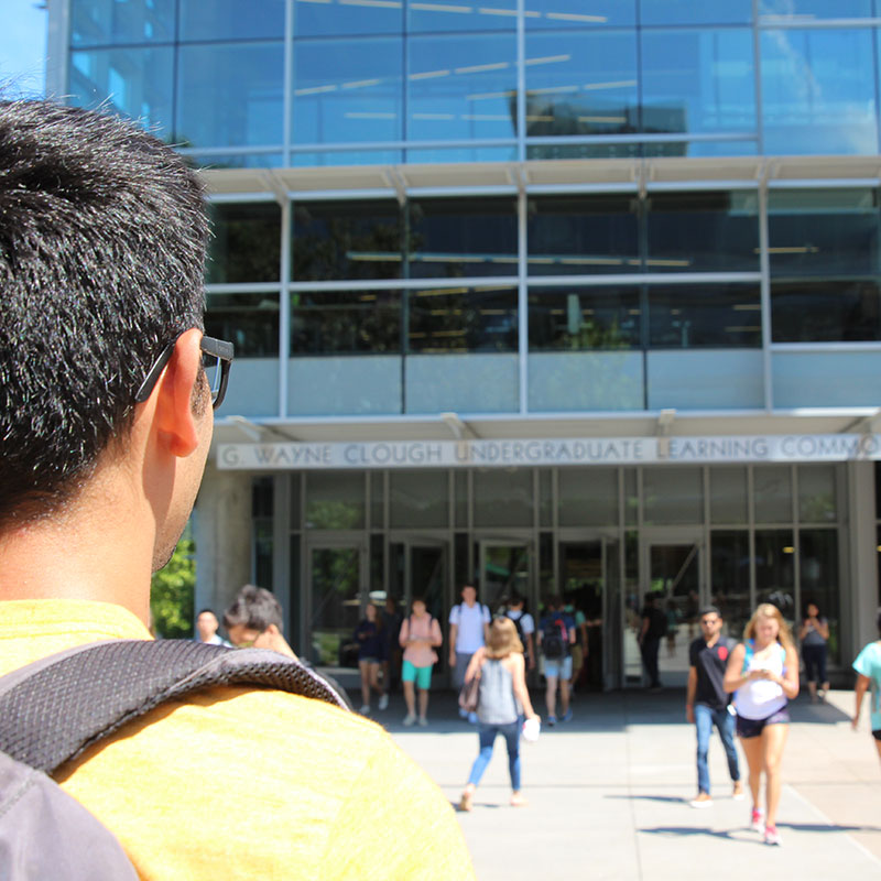 It’s back to Clough Commons for the second class of the day, CS 1371. “My insecurities and nervousness about starting school have all gone away,” Sebastian says. He immediately finds a classmate with whom he can strike up a conversation in Spanish.