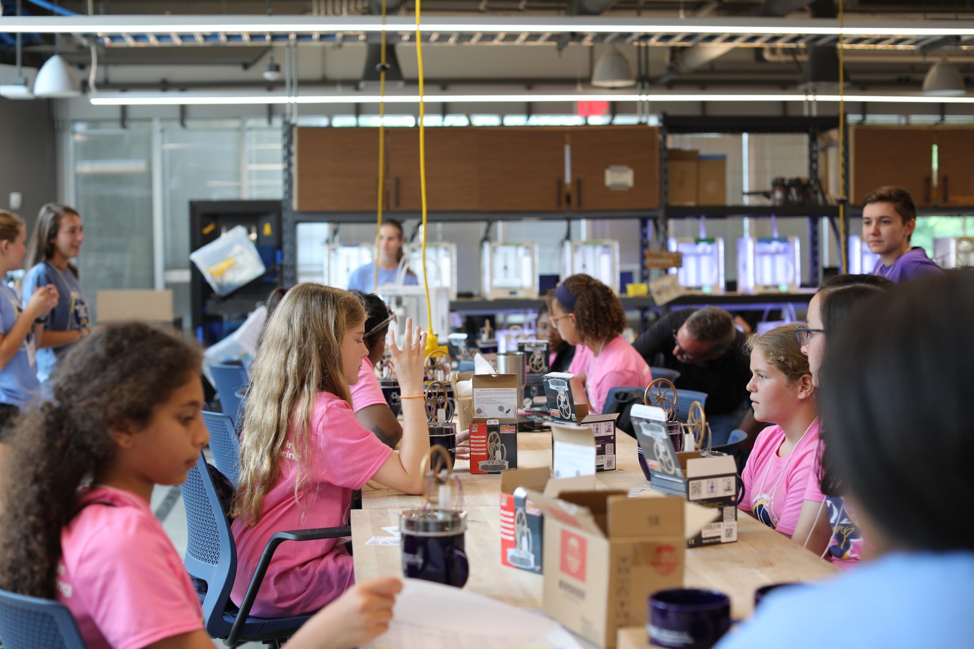 Seventh and eighth grade girls at Georgia Tech's TEC Camp in the Georgia Tech Invention Studio