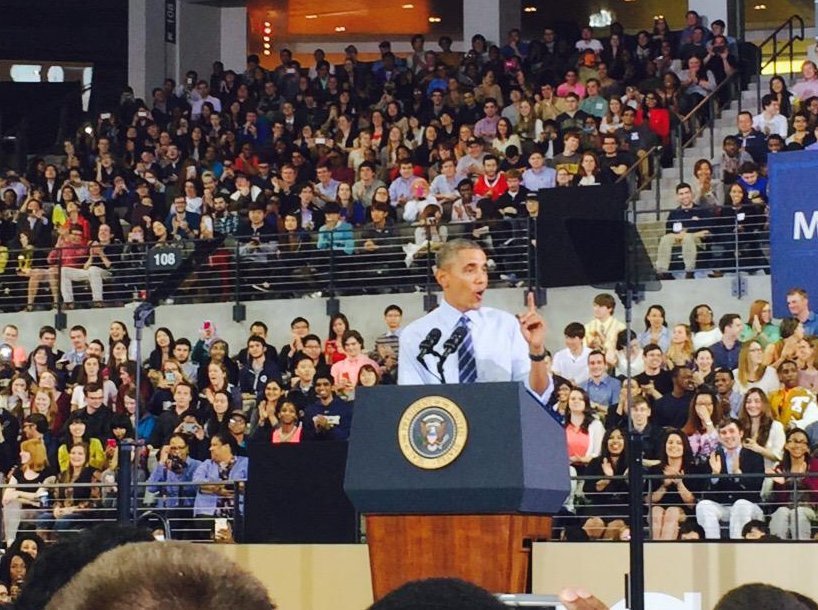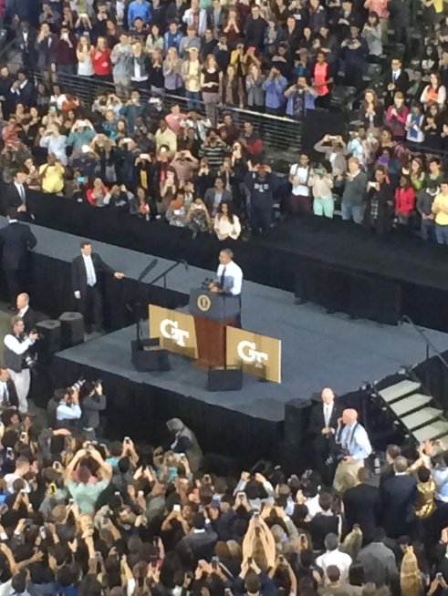 Campus was bustling with activity as Georgia Tech served as the setting for President Barack Obama to address college affordability. The capacity crowd in McCamish Pavilion got pretty loud at times. But inside the arena wasn’t the only place buzzing with interest in what the commander in chief had to say.