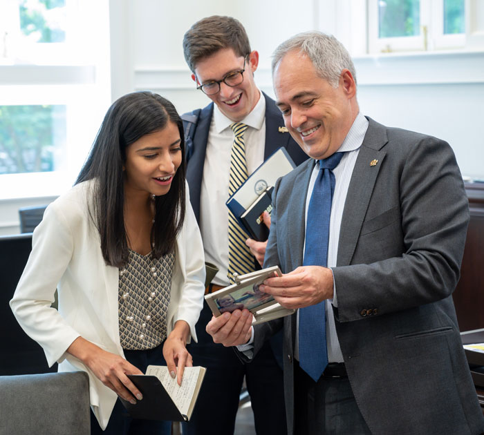 In the days that followed, his efforts continued apace. In addition to giving his first Institute Address, President Cabrera attended several campus events, including the football home opener, the opening of Tech’s newest mental health facility, and the ceremony honoring four young men who blazed a history-making trail at the Institute.